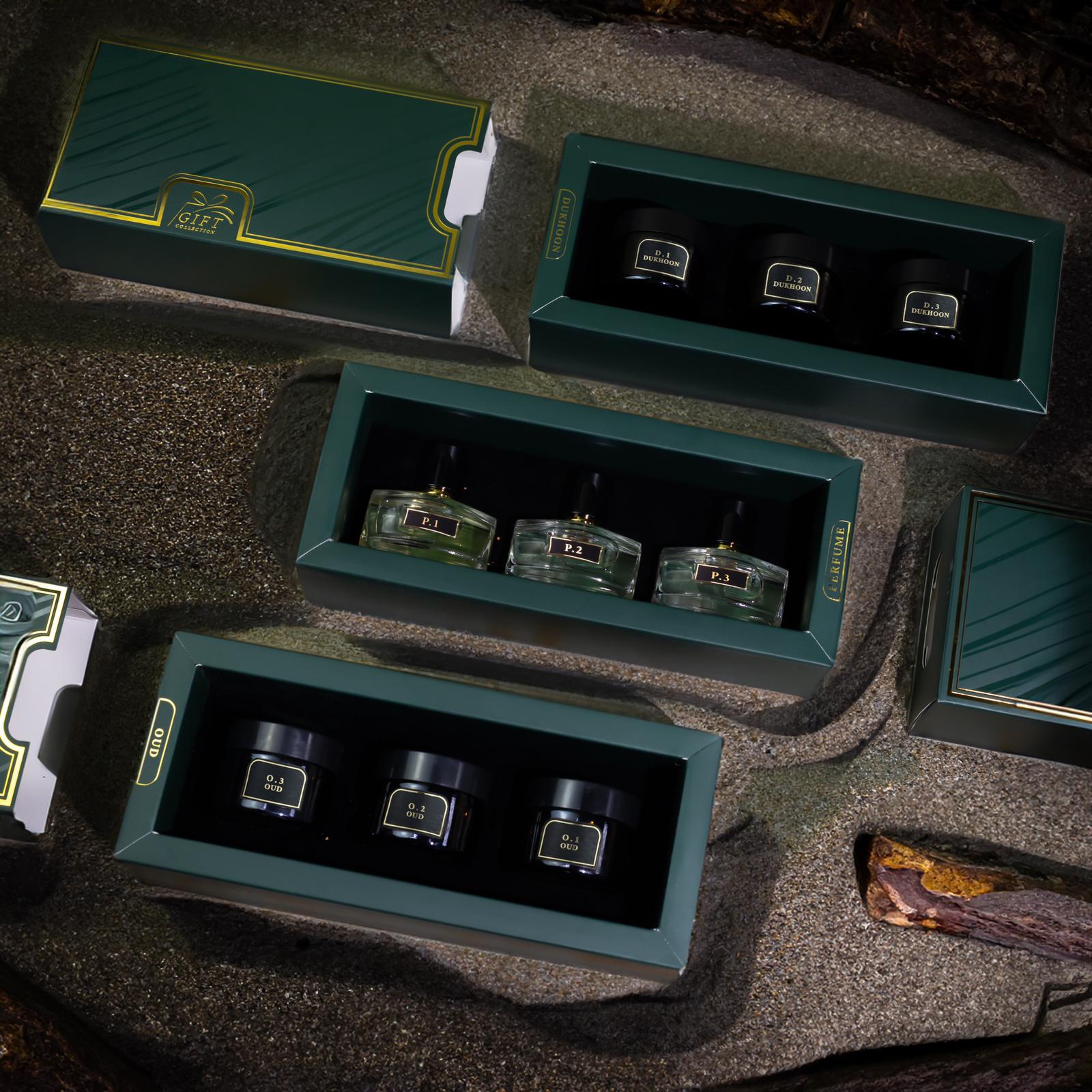 عرض مجموعة ثلاثة بوكسات (3 عطور + 3 دخون + 3 عود)